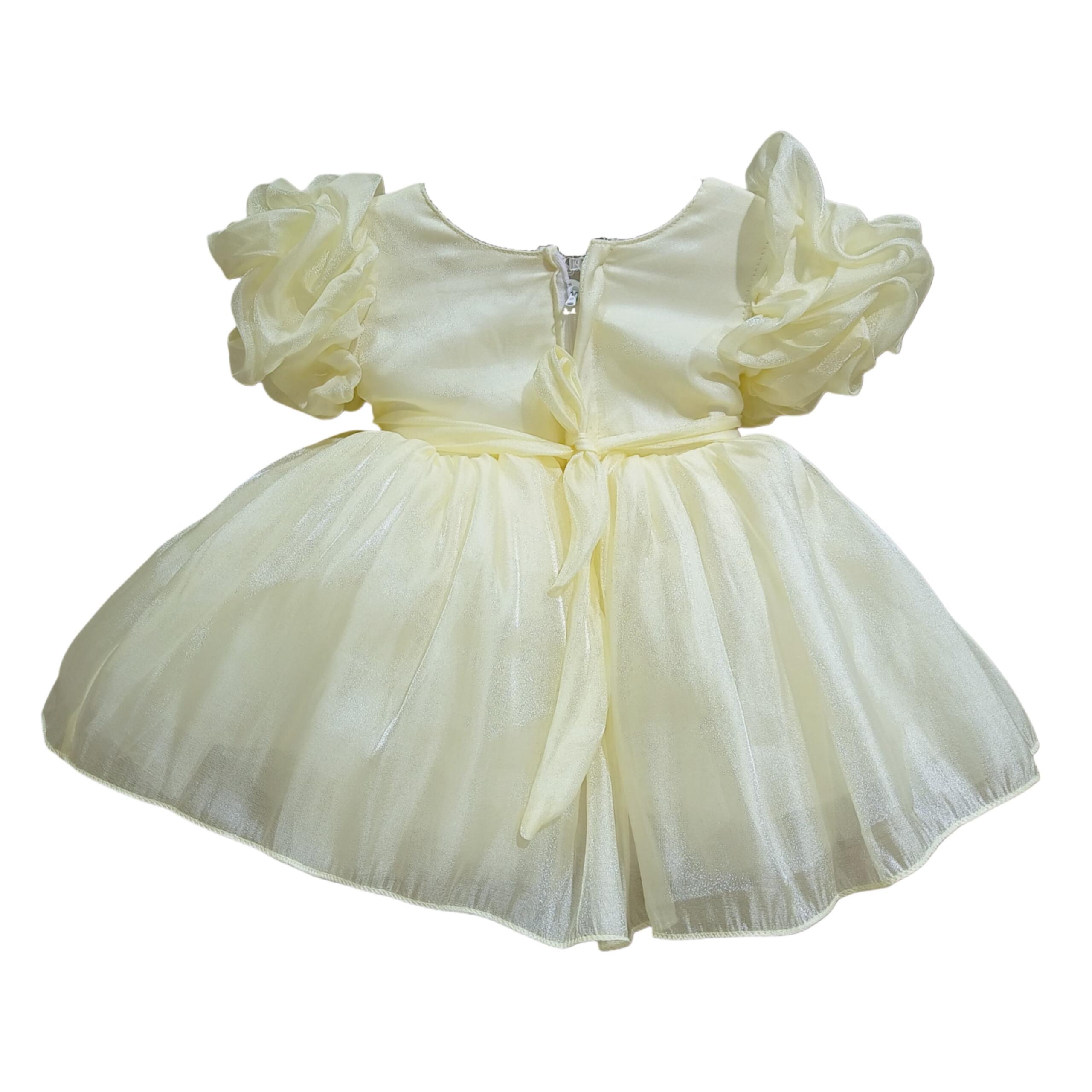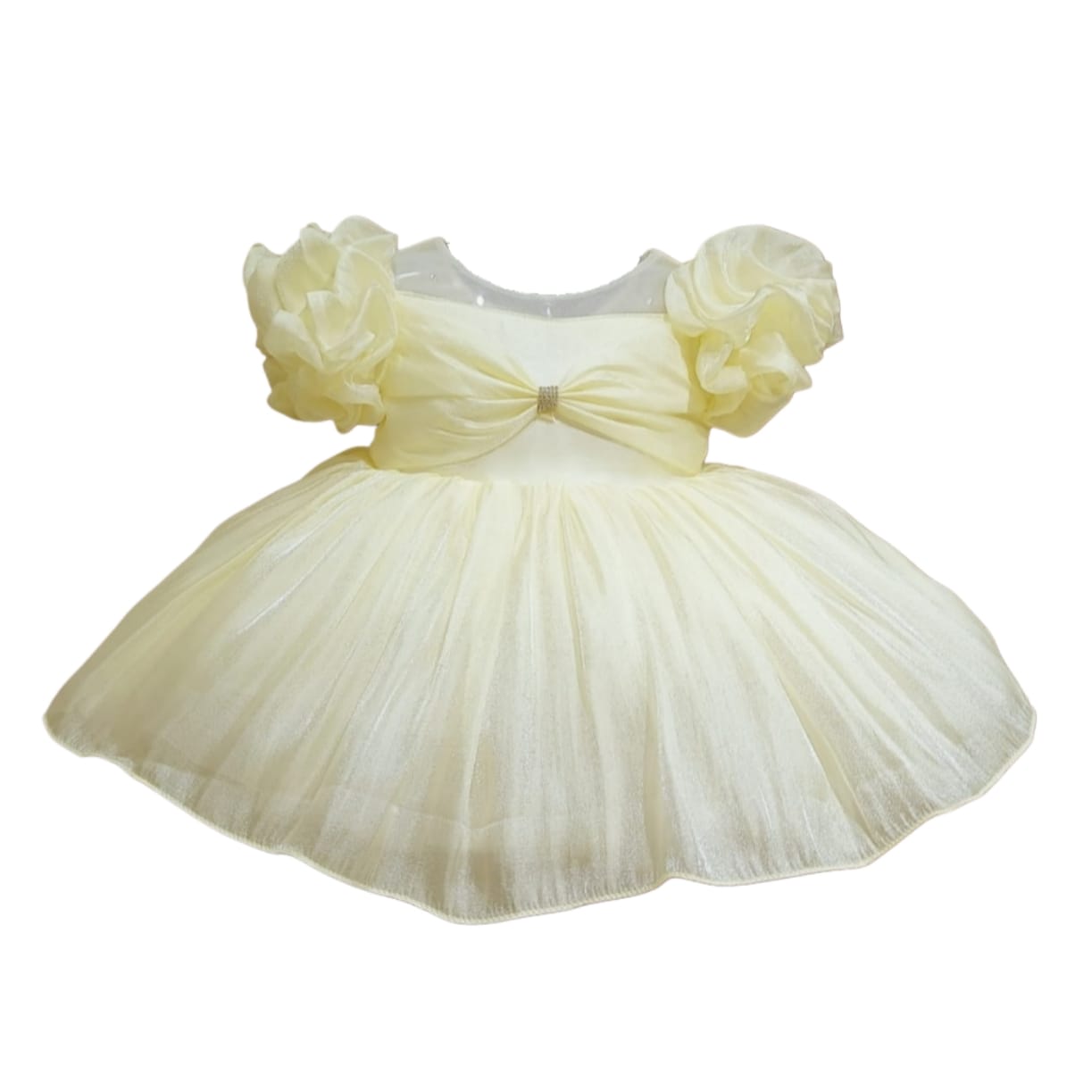 Dress your little one in timeless elegance with this beautiful DeeVee Creations Baby Girl Party Dress, thoughtfully designed to make special moments even more memorable. Crafted in a soft butter-cream pastel shade, this dress blends delicate charm with comfortable wear, perfect for babies.