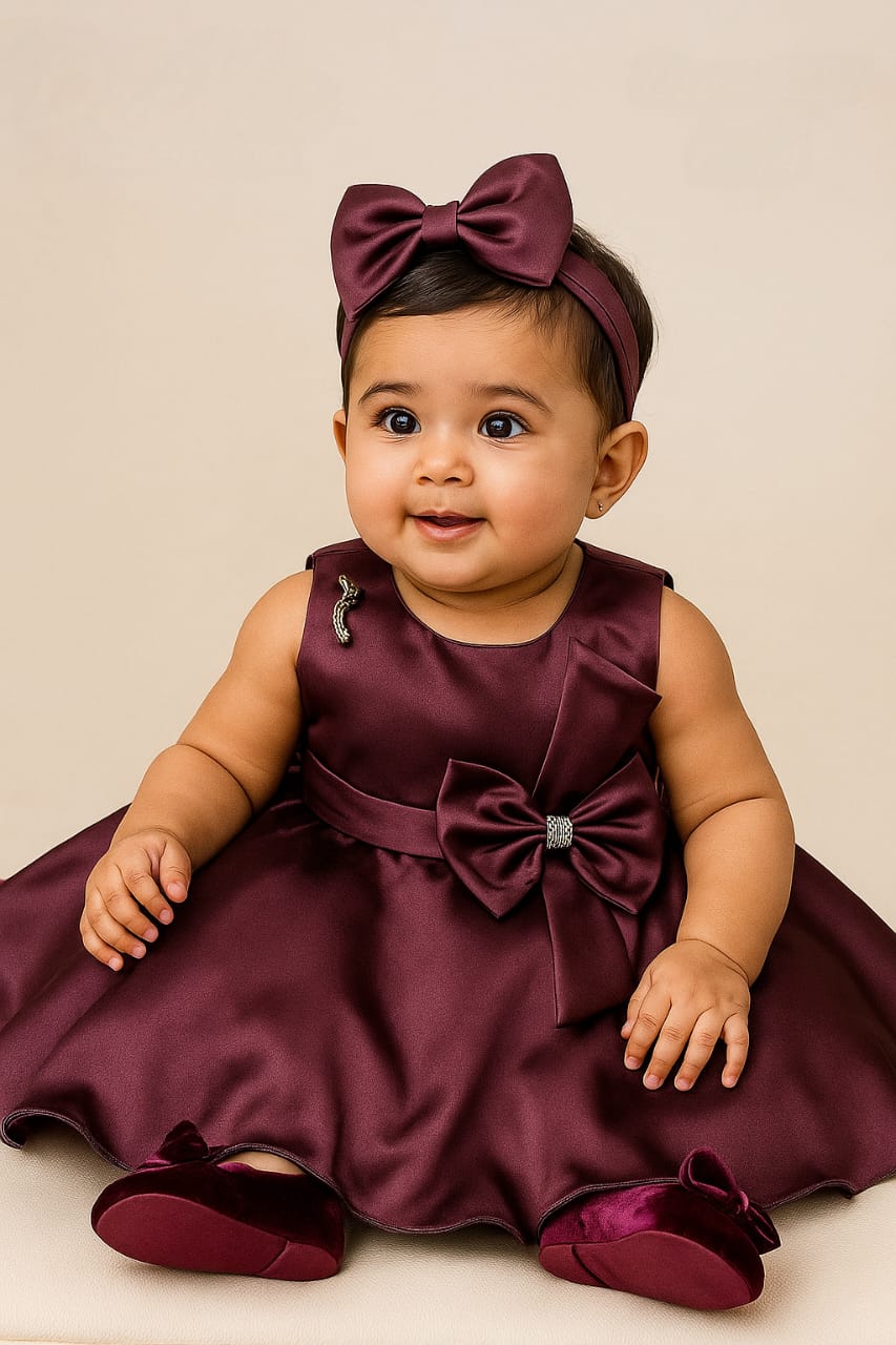 Presenting an enchanting sleeveless party dress designed for your little princess! Crafted from luxurious, smooth satin fabric, this adorable frock features a charming round neck and a full, flared skirt with a delightful scalloped hem. A prominent, elegant bow adorns the waist, adding a touch of sophistication and sweetness. Perfect for birthdays, parties, weddings, or any special occasion, this comfortable and stylish dress ensures your child shines brightly. The easy-to-wear design and vibrant colors make it a must-have addition to her wardrobe, guaranteeing smiles and compliments.